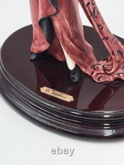 It stands 18 inches tall and 7 inches wide, making it a large and impressive addition to any room. The sculpture is signed by A. Santini and is an original piece from Italy. It was manufactured in the late 20th century, specifically in the 1970s. The sculpture weighs 5 pounds and comes unboxed.